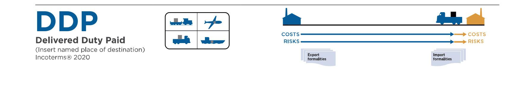 Giao hàng DDP cực kỳ rủi ro cho người bán. Với DDP incoterms 2020. Người bán có nghĩa vụ thông quan hàng hóa cho cả xuất khẩu và nhập khẩu. Phải trả tất cả thuế nhập khẩu cũng như thuế VAT các loại thuế khác. Đồng thời thực hiện tất cả các thủ tục khác cho đến khi hàng đến tay người mua